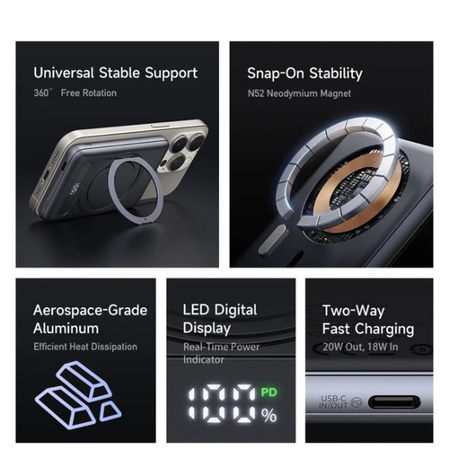 پاوربانک Mcdodo MC-836 یکی از جذابترین شارژرهای همراه امروزی است که با ظرفیت 5000 میلیآمپر ساعت و طراحی فوقالعاده نازک و فلزی، تجربهای متفاوت از شارژ همراه را ارائه میدهد. این محصول تنها 14 میلیمتر ضخامت و حدود 150 گرم وزن دارد و بهراحتی در جیب یا کیف شما جای میگیرد. بدنه آلومینیومی به همراه پوشش ABS و PC علاوه بر زیبایی و حس لوکس، مقاومت بالایی در برابر ضربه و خطوخش ایجاد میکند. این پاوربانک به درگاه USB-C با توان خروجی 20 وات مجهز است و از شارژ سریع با شدت جریانهای 5V/3A، 9V/2.22A و 12V/1.67A پشتیبانی میکند. به این ترتیب میتوانید گوشیهای هوشمند و دستگاههای سازگار را در کمترین زمان شارژ کنید. علاوه بر این، وجود قابلیت شارژ بیسیم مغناطیسی (MagSafe) باعث شده کاربران آیفونهای سری 12 و بالاتر بدون نیاز به کابل، تنها با قرار دادن گوشی روی پاوربانک شارژ ایمن و مطمئنی را تجربه کنند. یکی دیگر از ویژگیهای کاربردی Mcdodo MC-836 حلقه یا استند 360 درجه آن است که امکان استفاده راحت از گوشی هنگام شارژ را فراهم میسازد؛ چه برای تماشای فیلم و چه برقراری تماس تصویری. سیستم حفاظتی داخلی نیز از اتصال کوتاه، شارژ بیش از حد و داغ شدن جلوگیری میکند تا کاربر با خیالی آسوده از دستگاه استفاده کند. به طور کلی، پاوربانک مغناطیسی Mcdodo MC-836 انتخابی ایدهآل برای کسانی است که به دنبال یک شارژر همراه نازک، سبک، زیبا و مجهز به شارژ سریع 20 وات و شارژ بیسیم هستند. این محصول ترکیبی از طراحی مدرن و عملکرد قدرتمند را در قالبی کوچک و قابل حمل ارائه میدهد و میتواند همراه همیشگی شما در سفر، محل کار یا دانشگاه باشد.