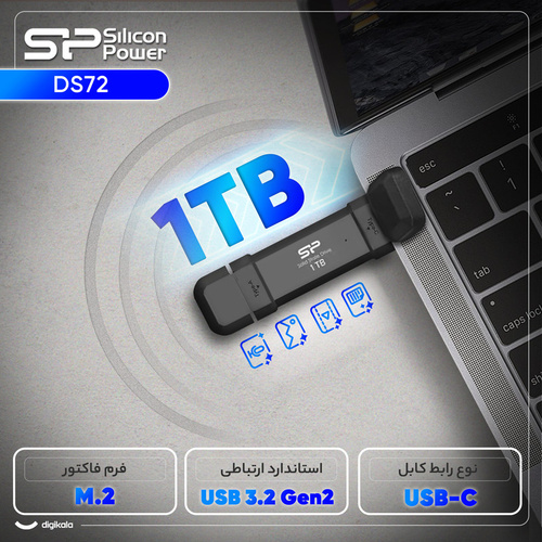 اس اس دی اکسترنال سیلیکون پاور مدل DS72 ظرفیت 1 ترابایت رابط USB 3.2 Gen2